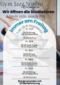1 Monat lang, immer am Freitag, gratis reinschauen, mitmachen, sich begeistern lassen ….. Pack die Gelegenheit wir freuen uns auf dich 🙂